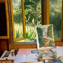 A série de desenhos e as canalizações desenvolvidas durante a residência Terra Una, fazem parte de uma rotina de encontros interdimensionais. Anotações ilustradas sobre desdobramentos, projeções astrais. Juliana Freire, Bocaina, Janeiro de 2024